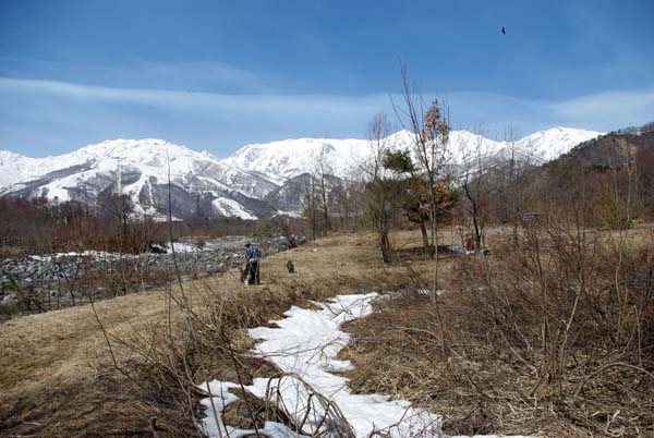 川原も雪が融けてお散歩できるようになったよ~