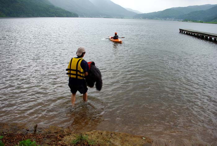 踏ん張って抵抗するマル太をなんとかカヌーに乗せた。ふぅ~