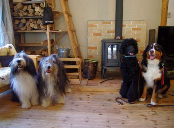 それにしても スタンダードプードルさんと バーニーズさんと一緒では タロ君とマルタが 中型犬に見えるね。