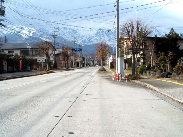 駅前通り(前方が白馬駅)